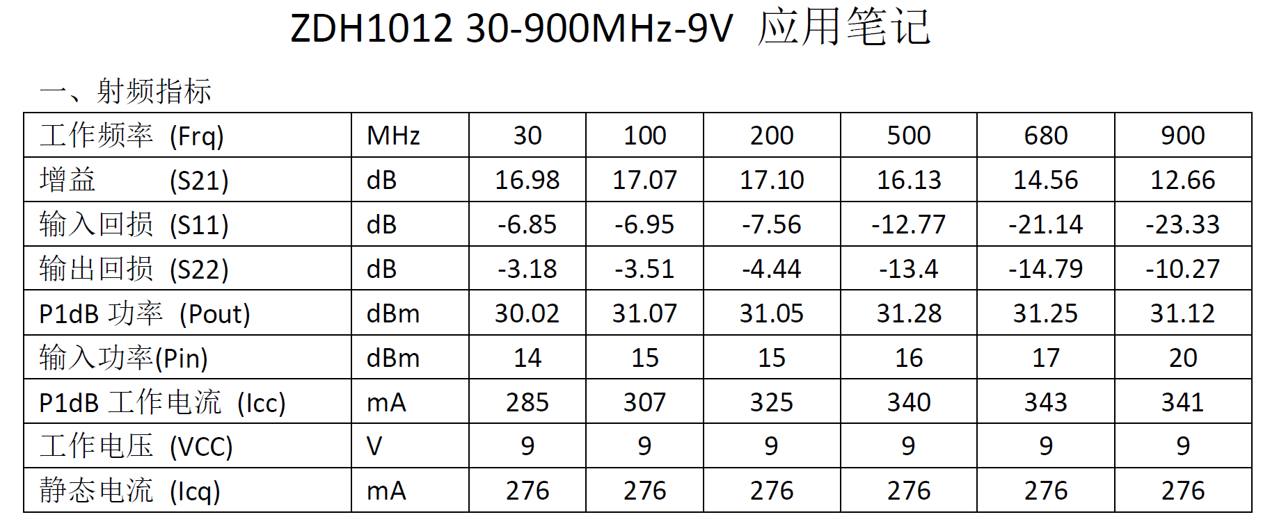 型号: ZDH1012 30-900MHz-9V应用笔记