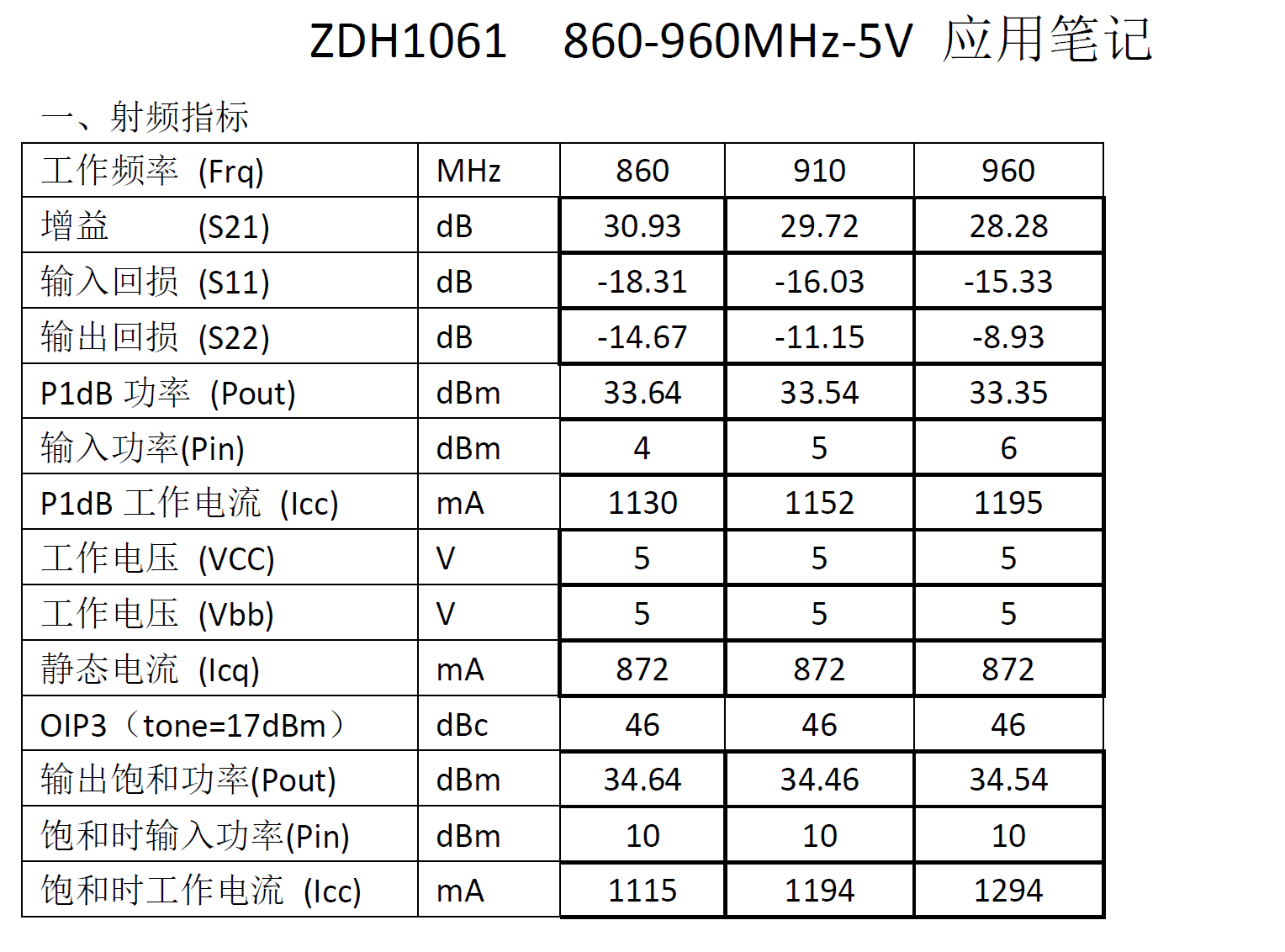 型号: ZDH1061 860-960MHz-5V应用笔记