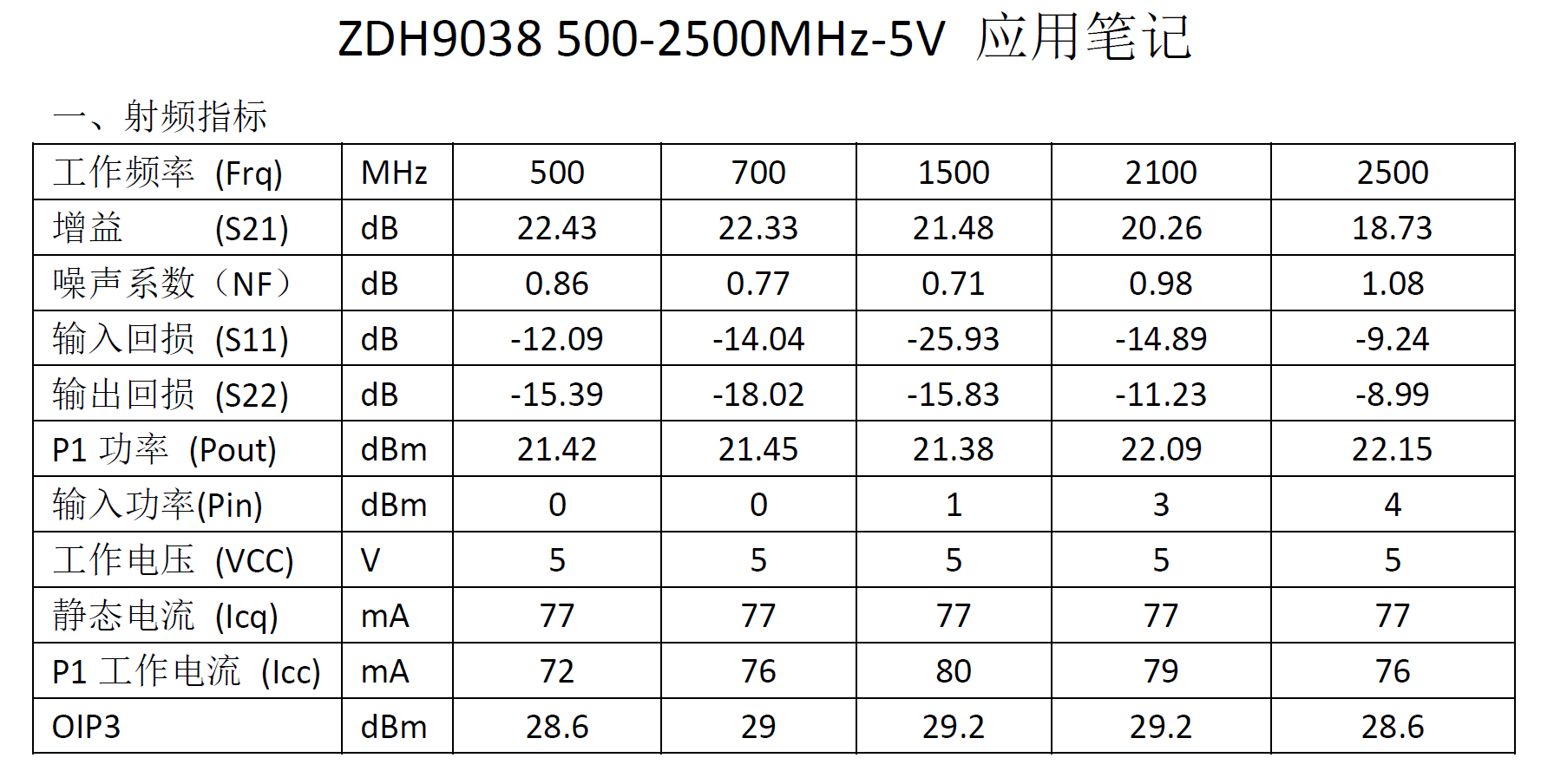 型号: ZDH9038 500-2500MHz-5V应用笔记